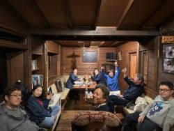 食いしん坊の会長は昼は蕎麦屋、宿泊は食事がなかなかイケてるタンネとだけ決めていて、